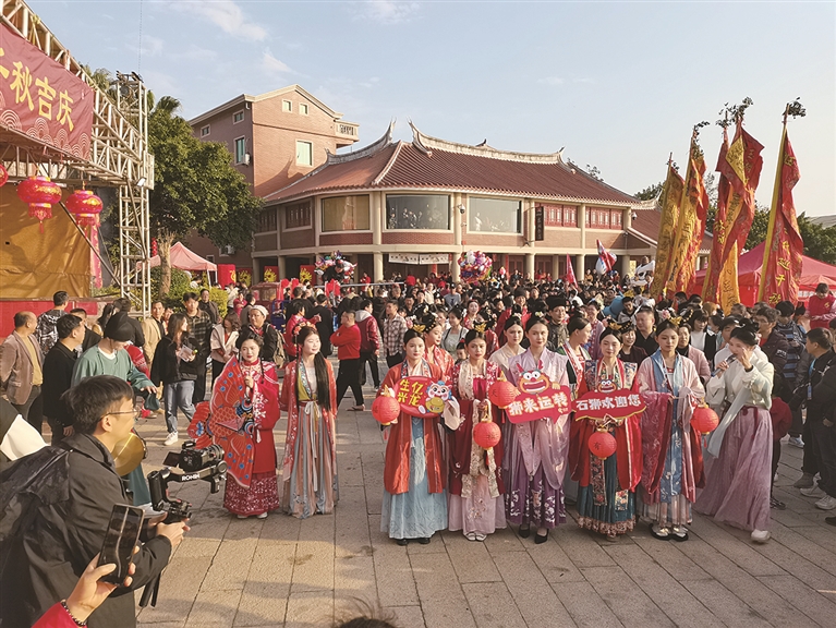 下午3时40分,伴随着铿锵的锣鼓声,作为2024年蚶江元宵活动重头戏的民俗巡游活动拉开序幕。鼓队、舞狮舞龙、管乐队、汉服展示、群众方阵等吸引了众多市民和游客前来观赏、体验。他们或驻足观看精彩表演,或参与、体验写福贴福、宋元娱乐等相关活动。民俗巡游活动为市民游客献上一场极具时代气息、独具地方特色、内容丰富多元、看点亮点纷呈、群众互动性强的民俗文化盛会。