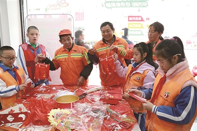 本报讯 2月24日上午,在老师、家长和春蕾爱心志愿服务队的组织下,湖滨街道环卫工与五小2020级5班志愿者学子共聚德辉商圈“党建+”邻里中心,利用红包壳、塑料袋、食品盒盖、一次性杯子、矿泉水瓶等材料制作环保花灯。一件件旧物经过加工变得“龙”光焕发,一盏盏形态各异的花灯呈现眼前。在亲自动手中,大家一同感受垃圾分类“变废为宝”的环保理念。