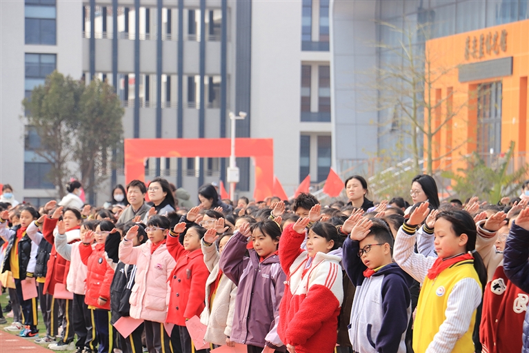本报讯 2024年春季学期2月26日开启!石狮各学校纷纷用充满仪式感的开学仪式,引领学生开启新学期的逐梦之旅。在石狮市鹏山实验学校的开学典礼上,学生以矫健的身姿跃过象征着梦想的“龙门”,而后在鲜红的国旗下,全体鹏山学子齐诵《龙年龙语,鹏山鹏飞》,抒发迎接挑战、奋发进取、超越自我的豪情。