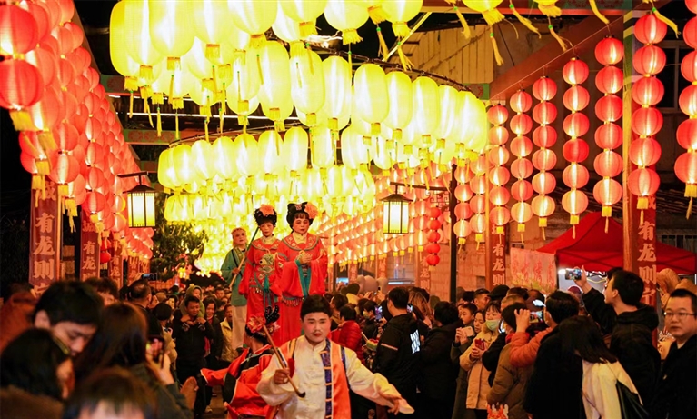 本报讯 充满浓浓闽南年味的第四届永宁古卫城元宵民俗文化庙会2月25日晚落幕。庙会期间,宋元风舞蹈、舞龙游古街、非遗快闪、百家姓“姓福灯”等民俗活动轮番上演,吸引大批游客前来游玩,欢度元宵佳节。据初步统计,两天时间,有5万多人次游客亲临现场游玩,而观看直播的观众达20多万人次。