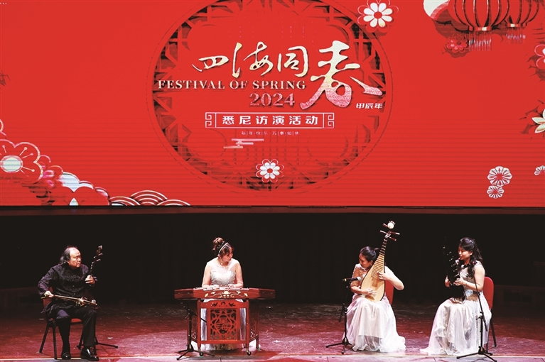 当日,“四海同春”悉尼访演活动在澳大利亚悉尼市政厅举行。演出汇集歌舞、杂技、武术、京剧、乐器演奏等形式,为当地华侨华人呈现一场极具中国韵味和春节喜气的文化大餐。