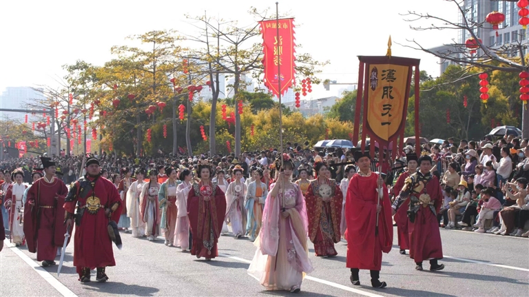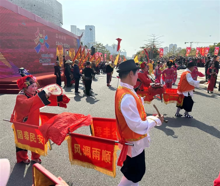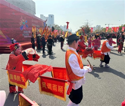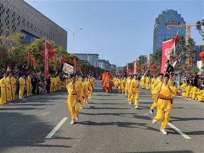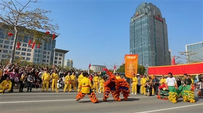 2月15日下午,在泉州东海中央商务区,“龙腾东海·福满泉州”民俗踩街火热登场,来自泉州各地的30个方阵、30个非遗项目、1500名演职人员走上街头,以行进式表演或定点展演的方式,尽展千年古城传统民俗、民间艺术的风采。这是泉州时隔20年重启大型民俗踩街活动,为泉州市民和八方游客带来一场“民俗狂欢节”。
