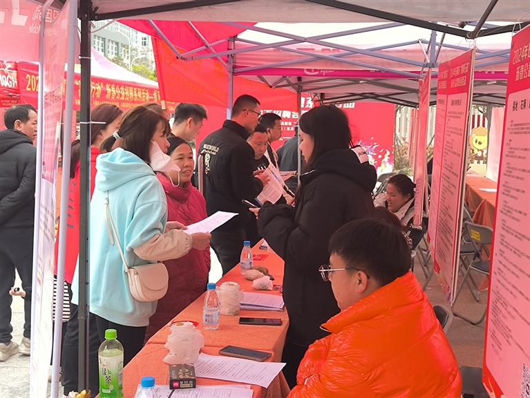 当日,不少求职者早早来到高新区“党建+”邻里中心旁“候场”。“之前在厂里主要是机械操作,今天想看看有没有电子厂招工。”邱下村的邱先生特地赶来招聘会现场,他认为线下招聘会来到“家门口”,很方便。同样情况的还有古浮村的蔡女士及同伴。“这几年一直在家做全职宝妈,现在孩子大了,想找份工作贴补家用。”蔡女士表示,希望能找一份工作时间短一点,薪资4000元左右的工作。