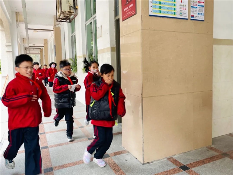 消防演练前,为确保师生在活动中的安全,学校制定了详细的演练预案,部署演练事宜。各班级围绕“消防安全”主题向学生介绍了防火、逃生、报警等消防知识,并强调了此次演练的注意事项。随着急促的警报声在校园内响起,消防疏散应急演练正式开始。听到警报声各班级学生在班主任的指导下迅速捂住口鼻,弯腰俯身,快速、有序地沿着指定路线撤离到操场上。撤离到操场后,各班老师迅速维持好秩序,及时清点人数,确保每个同学安全撤离,无一遗漏。整个演练过程用时3分50秒,达到预期效果。(记者 许小雄)