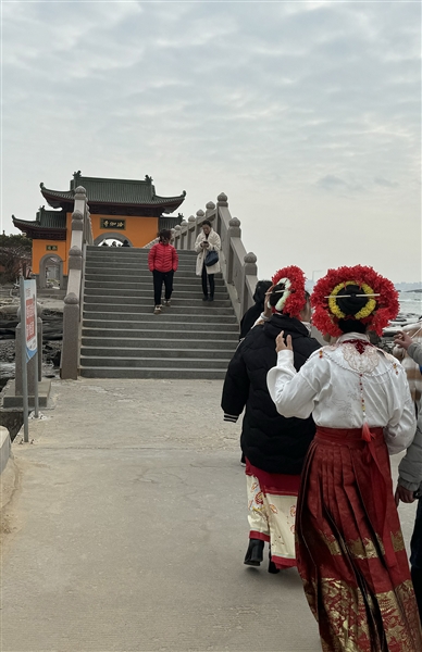 近日,笔者在我市景区看到,一些身穿汉服、头戴簪花的游客正拍着美美的照片,十分引人注目。游客小张说,自己是被各大平台上穿汉服旅游的视频所“种草”,也想尝试一下。“穿上汉服打卡景点更有沉浸式的体验,能感受到历史与现实的碰撞。而且随手一拍就能出片,让人觉得不虚此行。”“我还买了马面裙作为自己的新年衣服,既能满足保暖需求,还显得典雅大方。”游客小林说,“拜年的时候亲戚朋友们都夸衣服很好看、很有特色。”