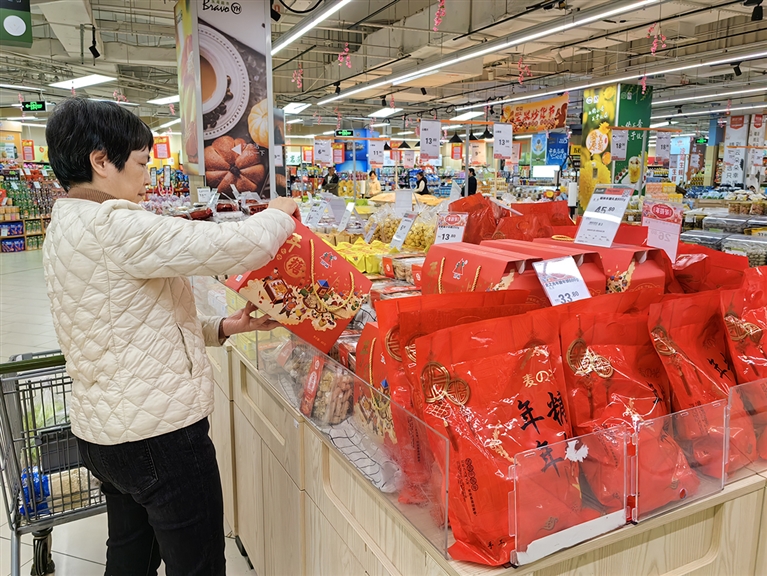 今年春节期间,琳琅满目的闽南风味美食,见证了石狮过年的精彩,激发着幸福甜蜜的年味。春节过后,传统美食的吸引力依然不减。2月28日,记者在宝岛路附近一家商场里看到,聚集了年糖、麻生糕、洋酥、麻枣、绿豆饼等十多种传统美食的货架,摆放得满满当当,在商场货品中显得十分醒目,吸引多位市民驻足选购。