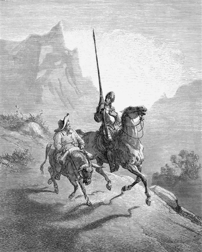 一切因书而起。热爱阅读的人,体验过一千次精彩人生,自然不甘于庸常生活。堂吉诃德正是如此,他生活在枯燥乏味的现实与充满奇趣的书房所构成的“双重世界”里,他嗜好骑士小说到了痴狂的地步,甚至把家里的地卖了钱去买书。我想,或许应该从“理想读者”这个角度,重新认识堂吉诃德这一形象,他的痴、他的醉、他的迷,在古往今来的爱书人中恐怕难以找到第二个。