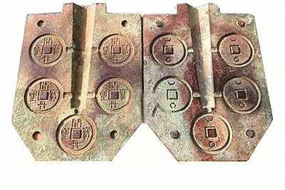 古钱币造假从古到今层出不穷。因为古钱币的制造均为“母钱”的钱范(图1),通过翻砂浇铸而成(图2),工艺流程简单,仿冒伪造也较容易。只有掌握了它的工艺流程,才能进行真伪辨别和鉴定。