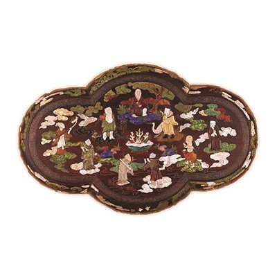 图1 清代紫檀木百宝嵌八仙图海棠式攒盒