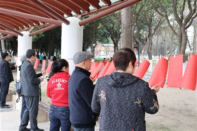 本报讯 近日,我市龟湖公园出现了“相亲角”,只见红绳上挂着一张张A4纸,纸上是征婚的基本信息。红色表示男性,粉红色表示女性,征婚信息包括工作、年龄、择偶标准等。