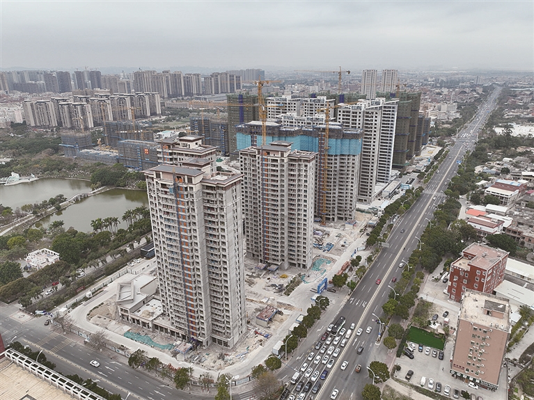 本报讯 作为石狮城建提质、片区更新的重要手笔,节后复工以来,在龟湖公园东片区,包括安置房、两个商品房项目(分三幅地块),工人和机械投入正有序恢复至正常状态。3月1日,记者以安置房为前景航拍了项目新貌,在主体结构节前封顶后,安置区目前已全面转入砌体和内外装施工,计划在今年12月完成外立面装修。(记者 康清辉 李荣鑫)