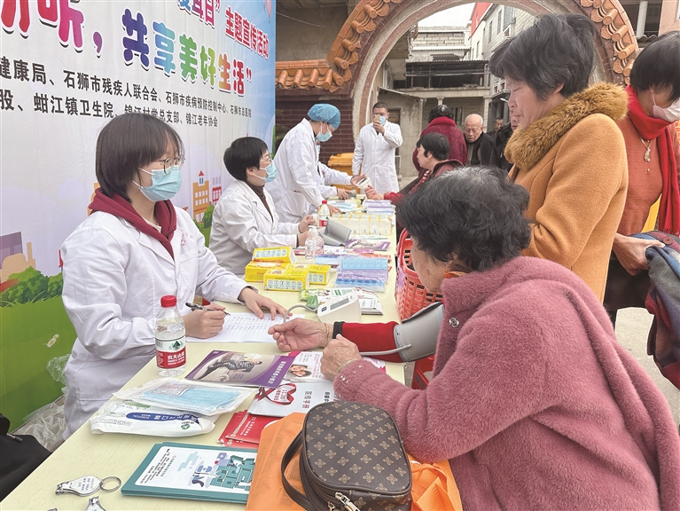 当天的主题宣传活动由石狮市卫生健康局、石狮市残疾人联合会、石狮市疾病预防控制中心、石狮市总医院主办,蚶江镇卫健股、蚶江镇卫生院、锦江村党总支部、锦江村老年协会协办。