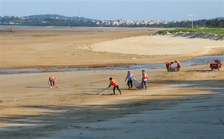 在祥芝风情渔港,一群“净滩人”常常成为人们津津乐道的话题。早在2014年,祥芝老渔民蔡加渐和陈省华夫妻,自发率先做起净滩公益。夫妻俩自己干,费用自己垫付。一年后,净滩行动的效果初步显现,垃圾减少了,海滩显露了。这些可喜的变化,附近的渔民看在眼里,乐在心里,也吸引越来越多人参与其中。2015年,石狮市祥芝美丽海岸志愿者协会应运而生,这也标志着净滩公益活动有了更可靠而坚实志愿服务的队伍。此后,多部门联动加上民间自发组织,公益净滩成为常态性的公益活动。