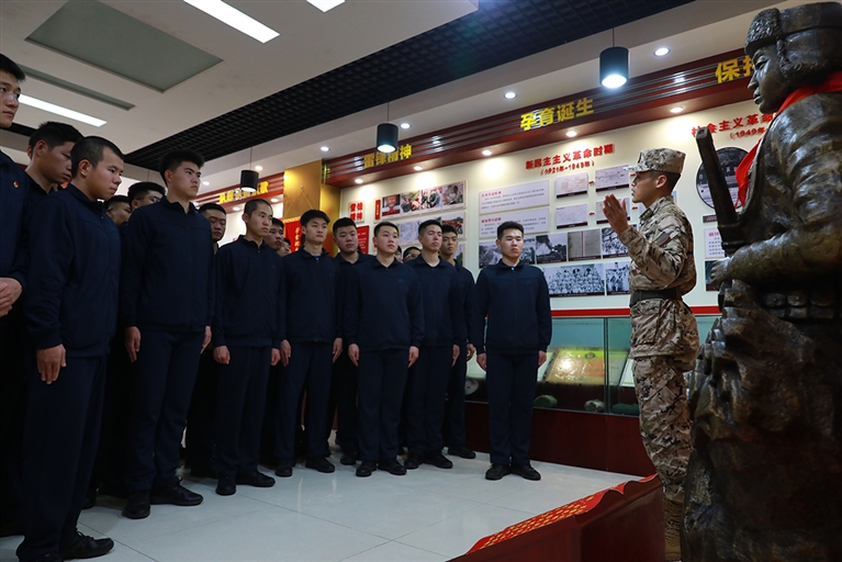本报讯 3月5日,泉州海洋职业学院的师生们走进武警泉州支队石狮中队营区,开展“重温雷锋精神、感悟初心使命”活动。