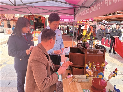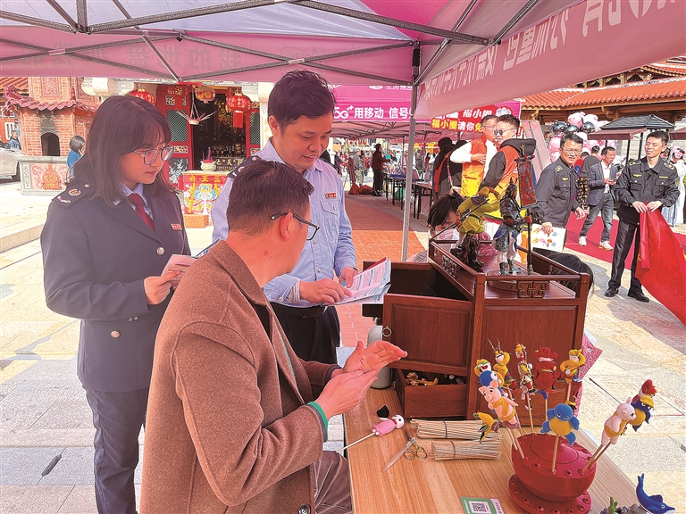 “我们将利用税收大数据构建高质量发展指标体系,为推动企业迈上降本增效、数字化发展新台阶提供‘税支撑’,为助力营商环境优化提供强劲动能。”石狮市税务局相关人员表示,下一步,石狮市税务局将以持续提升纳税人满意度为目标,以纳税人需求为导向,为纳税人提供更加高效、便捷、舒适的办税缴费体验。图为税务人员向纳税人宣传“数电票”服务