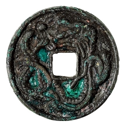 隋唐花钱注重写实,龙纹也更具艺术性,龙的形状有所改变,有鹿的龙角,鳄鱼的尾,鹰的爪,鱼的鳞……常伴有“火珠”云纹出现。