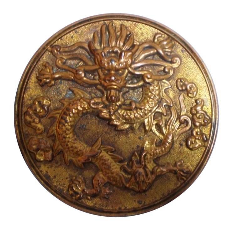 甲午中日战争后,清廷痛感整军经武之必要,遂于1901年9月下诏,宣布整顿兵制,编练新军(即使用枪炮的军队)。1905年,岑春蓂以湖北按察使擢升贵州巡抚,正式开始编练贵州新军。新军第一标下辖三营,每营500人,辖四队(分左、右、前、后队),另设炮队。全标军官l07人,士兵1846人,共1953人。每日内堂功课、外场操课各3小时。光绪三十三年(1907)秋,护理云贵总督沈秉经会同贵州巡抚庞鸿书、贵阳知府李传统等地方官员,检阅新军第一标编练成果,特制一枚纪念章,手工两面錾刻黏合,中间空心,正面镌高浮雕龙图,立体感强,龙须、龙鳞毫发毕现,精美绝伦,工艺精细高超。背面上半部边缘刻“光绪叁拾叁年贵州常备步兵队第一标秋操纪念”铭文,中间竖刻“云贵总督沈、贵州巡抚庞、贵阳知府李”三排文字。这是目前发现贵州最早的龙纹徽章。