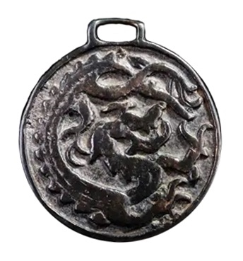 契丹王朝北枢密院的职权相当于汉制的兵部,所以北院官员的符牌镌龙图。“北院承旨”(全称应为“北院都承旨”)牌是契丹北院官员(相当于二三品级)证明身份的符牌,相近于现代的身份证或通行证。牌面高浮雕一条立龙,周围空地散布云纹和吉祥宝珠等物,牌上按四方阴刻“北院承旨”契丹四字。图4为元代契丹龙牌,铜质,不规则圆形,通径5厘米。