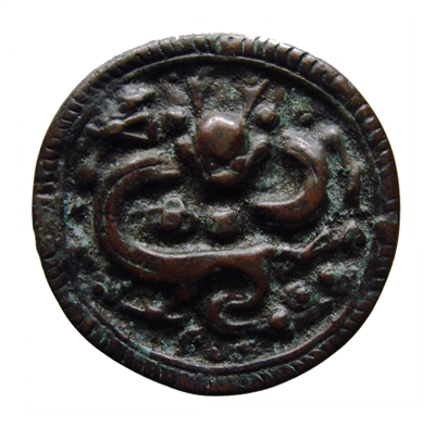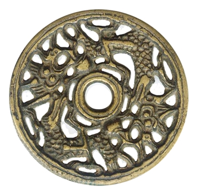 龙是中华民族的象征,其形象是各类艺术形式表现经久不衰的题材。龙纹饰徽章是古代徽章中的一个大类,历时之长久,工艺之精巧,形制之繁复,构图之多变,寄寓之丰富,为其他纹饰所不及。如果说龙文化是五千年华夏文明的一种凝结,那么作为造型艺术的龙纹徽章,堪称龙文化的载体和集大成。从汉代到清代,历经近2000年变化,形成了各朝代不同的风格特征。古代徽章中的龙纹有一个从简约到繁复,从宗教化向艺术化,从随意性向规范化发展的过程。探讨研究历代龙纹徽章,可以了解龙纹饰的发展和演变,为古代徽章的鉴定和断代提供依据。以下选取不同朝代典型的徽章,对龙纹饰的基本特征作简要综合论述。