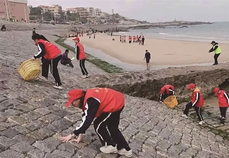 3月5日下午,石狮五中保护海洋志愿服务队及党员代表到祥芝镇东大垵开展净滩志愿活动。活动中,志愿者们充分发挥不怕脏不怕累的精神,互相配合、共同协作,认真清扫,不留任何遗漏,为美丽的海岸线贡献自己的一份力量。(记者 许小雄)