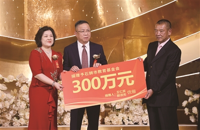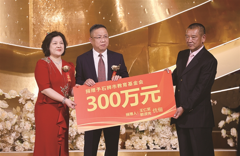 3月8日晚,省政协委员、香港石狮同乡总会候任会长、灵秀镇教育基金会会长王仁奖、郭须完伉俪在爱子新婚典礼上,向石狮市教育基金会慷慨捐赠300万元、向香港石狮同乡总会捐赠200万元。这一情系家乡教育公益事业的善举备受各界点赞,在石狮传为一时佳话。