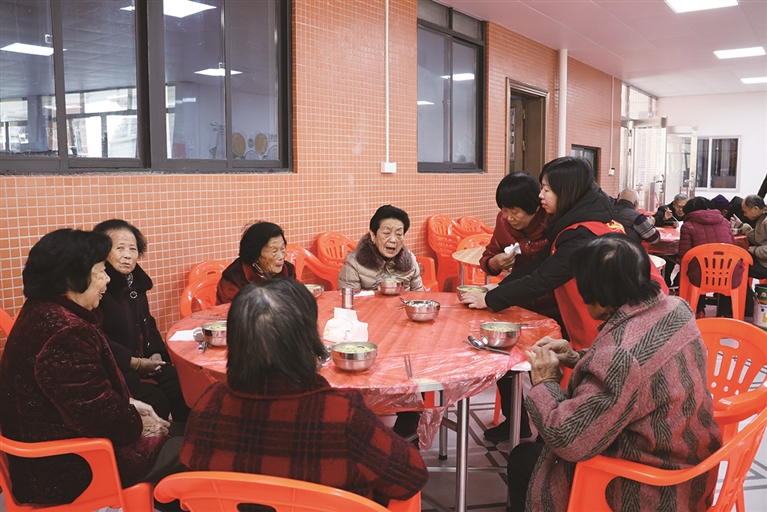2023年年底,灵峰村长者食堂全新开张。为了让更多老人受益得实惠,村委会工作人员、村老年协会、热心村民纷纷化身志愿者,或开着专车去接送路程较远的老人,或在厨房帮忙洗刷打下手,以温馨的文明实践弘扬敬老爱老的优良传统。