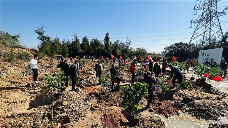 在郭坑村,该村植树志愿者与石狮市农业农村局联合开展以“春生万物 护绿先行”为主题的义务植树活动。在金鸡山生态文化园植树现场,志愿者有的栽树,有的扶苗,有的浇水,每个植树环节衔接有序,配合默契,充分发扬了团结、互助、友爱的精神。此次植树共栽种桃树苗200株,为文化园注入新绿。