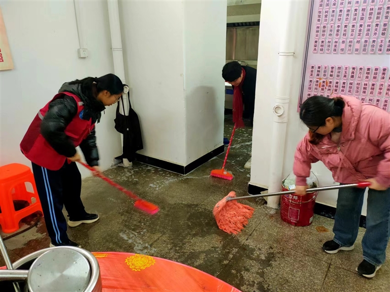 “地板我们来拖。”“我负责擦桌椅。”……3月11日上午,宝盖镇仑后村“党建+”邻里中心的居家养老食堂来了一群“红马甲”。一到食堂,大伙便迅速分工,帮忙打扫卫生。