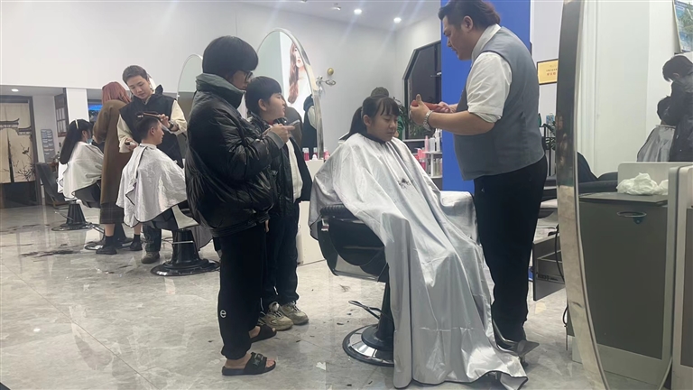 理发师汤先生告诉笔者,自古以来农历二月初二理发有着美好寓意,“儿童理发叫剃‘喜头’,保佑健康成长,长大后出人头地;大人理发则希望带来好运,预祝新的一年顺顺利利。”(张诗瑶)