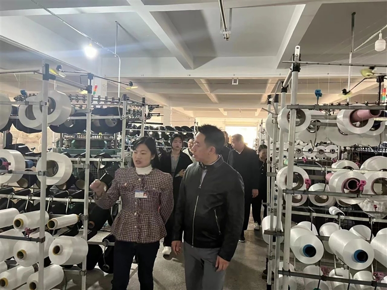 走访中,江西赣州市纺织服装行业协会一行深入新远辉产品生产车间,详细了解该企业在产品研发以及市场营销等方面的情况。