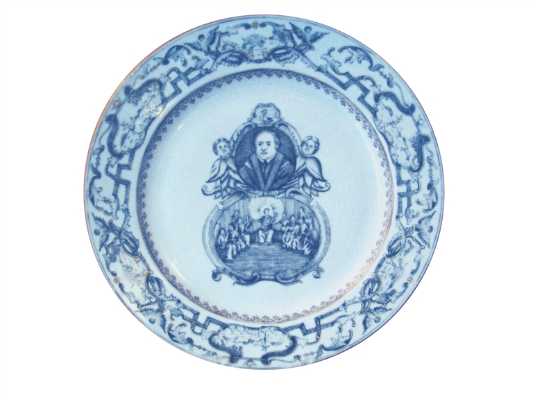 精明的欧洲商人不仅认识到欧洲人对精美的中国瓷器的需求,也认识到中国瓷器大多不符合欧洲人的生活习惯,他们找到最好的解决办法就是定烧。商人或使用者出图样,其造型、釉彩和图案都具有欧洲艺术风格。聪明的中国瓷业工人会在符合欧洲人审美观的前提下加进中国元素,这样既适应欧洲人的需求又弘扬了中国文化,使产品畅销欧洲,同时也繁荣了景德镇瓷业生产。外销青花瓷所表现的是外国风情,有历史事件,有宗教故事,有外国人物,也有异国情调,本文就搜集到的外销青花瓷器图片,剖析附着其上的中国元素。