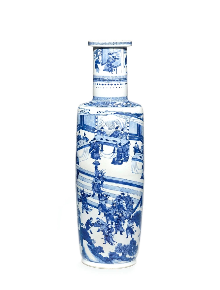 图1 清康熙青花“临潼斗宝”人物故事图棒槌瓶