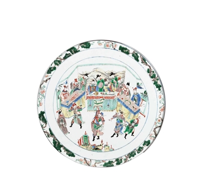 在瓷画创作中,人物故事一直是历代制瓷匠人们热衷刻画的题材。在每年的拍卖活动中,经常能遇到这类题材的作品呈现。下面就介绍一组“临潼斗宝”人物故事瓷器,感受当时的匠人记录下的一段春秋时期的故事。