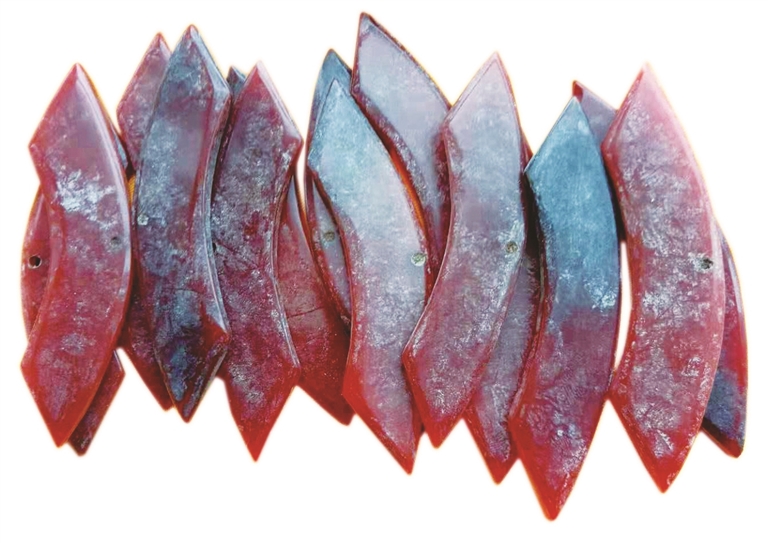 那些流行的鲜艳亮丽的“齐红”玛瑙,恰似采撷了宇宙彩霞中最绚丽迷人的光色,辉煌夺目,火红撩人。不但凝聚和折射着齐人尚红的情操,也开创了中华民族最早的“中国红”情结。