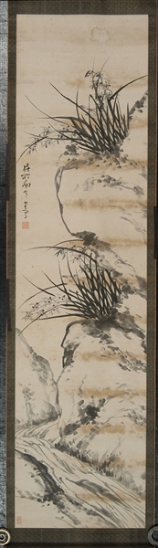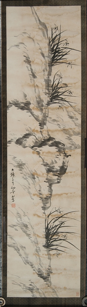 水墨竹兰四条屏(图3)款识分别为:“霁侯大兄大人属画,丙午五月仿李息齐作,松年”“大涤子有此本,松年”,钤白文印“小梦松年之印”。四幅画面整体以山石为基脉,布局却各不相同。翠竹或左或右,兰草或上或下。作者以枯笔勾石,加横皴竖苔,笔法写意凝重。兰花用淡墨绘花瓣,浓墨点蕊填枝,勾线细腻精致。秀竹以勾圈分节,线条流畅,尽显挺拔之姿。从整体看,这件水墨竹兰四条屏构图巧妙,墨色秀润含蓄,翠竹修长挺拔,幽兰清雅秀逸,浑然天成,是为松年的代表作。