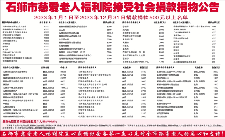 石狮市慈爱老人福利院接受社会捐款捐物公告