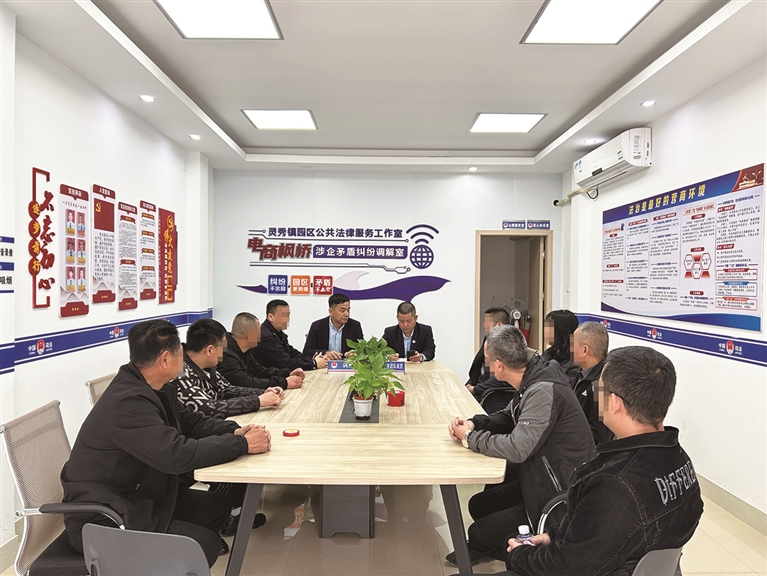 记者看到,通过将功能交叉、直面民生的服务窗口、治理资源重新整合优化,整个中心目前集成了受理站、矛盾纠纷多元化解中心、“电商枫桥”涉企矛盾纠纷调解室、忠泼金牌调解工作室、百灵鸟义警队工作站、公共法律服务工作站、灵秀镇社区戒毒站、街面普法宣传驿站等9大主要功能模块。“空间集约的同时,也推动更多治理力量集聚一线。目前常驻中心的,有镇级调解组、派出所民警等,日常也会根据实际,安排纪委委员、顾问律师、心理咨询师等人员定期轮驻,为群众‘一站式’提供居住证办理、日常接访登记、纠纷调处、公共法律服务、网格业务流转等综合服务超30项。”灵秀镇党委副书记杨安雅介绍。
