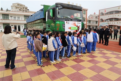本报讯 3月18日下午,石狮市公安局交警大队联合蚶江派出所走进锦亭小学,为该校全体师生上了一堂以“货车有盲区 你我要远离”为主题的交通安全宣传活动。