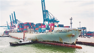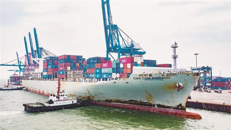 石湖港首迎 开港以来 最大吨位集装箱船舶