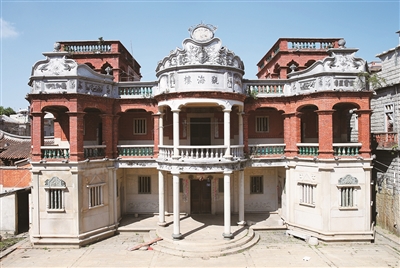 观海楼,顾名思义是思念海外的亲人,如今七十载,该楼依然风姿卓绝,里里外外都隐藏着闽南民间文化的传承密码,所传家风家训,或热烈亲切、或质朴无华、或饱含深情,钢筋水泥结构配上闽南红砖、南洋花砖,异域风情与闽南文化交相辉映,烙下深深的“乡愁印记”,彰显东店华侨开眼看世界的胸襟。