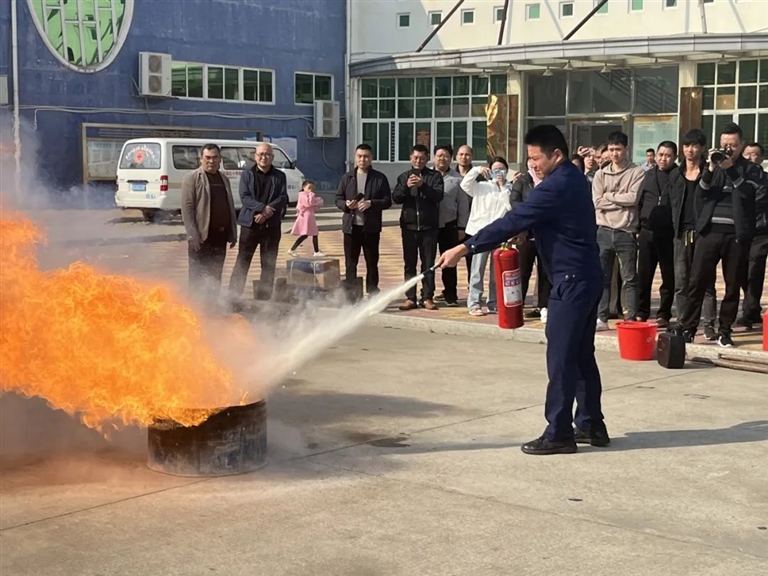 演练开始前,鸿山消防救援站副站长作专业培训,分别从火灾成因、火灾逃生技巧、消防安全知识、灭火器使用实操等方面给大家作了详细的讲解和演示,部分商铺老板在消防员的指导下进行实操训练。随后在现场模拟“火灾”环节,参训人员迅速有序地按照指引安全撤离。