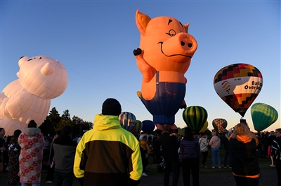 2024怀卡托热气球节于3月19日至23日在新西兰怀卡托地区汉密尔顿举行。造型各异的热气球一起点缀天空,吸引人们前来观赏。(新华)