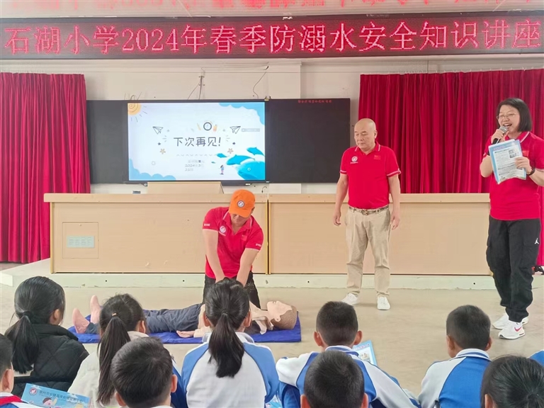本报讯 3月21日,泉州海事局携手安捷救援中心,在石湖民族小学开展2024年春季防溺水安全知识宣讲,进一步普及水上安全知识,提高青少年水上安全意识和遇险求救自救技能。