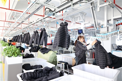 本报讯 3月20日上午,记者在“科技型中小企业”“福建省科技小巨人”企业——福建一笔成服饰科技有限公司5G智能生产车间看到一幅“热辣滚烫”的生产景象:一件件智能加热羽绒服、马甲成衣半成品吊挂在上空,由一组组轨道精准输送到相应工位,经缝纫、整烫、质检、包装等工序,一批批成品被打包、装车,通过物流车队运往国内外。