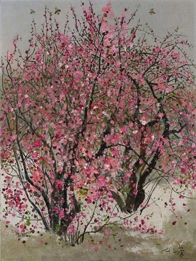 2015年的香港苏富比秋拍会上,一幅吴冠中1973年创作的油画《小桃红》,收获4444万港元成交价。1973年初,吴冠中京郊创作,时值春天,吴冠中心情奋发昂扬,画下了许多欣欣向荣的自然风物,如《荷花》《红梅》《海棠花》等作品。这些作品多数以一株植物独立置中而立,而《小桃红》却有所不同:画中两株桃花破土而出,至于上部则如拱门之结合,枝丫交结,难分彼此。桃花开满枝头,明艳亮丽的桃英桃叶,几乎占据整个画面,喜气洋溢。《小桃红》虽然取材自京郊盛开之桃花,其形象却具有强烈的主观、表现元素,两株桃花的枝丫刚中带柔,似乎欲向四面八方张开,如绮萝、如藤蔓,与现实中结实硬朗的桃花枝干迥异。艺术家如此塑造桃花形象,一则贯彻其拟物为人的造型哲学,使作品富于生命力,二则能使两株桃花自然地产生相依相偎的视觉效果,突显主观情感。吴冠中绘画用色谨慎,致力避免媚俗。《小桃红》所运用的大红色调,在他20世纪70年代的云云作品之中蔚为珍稀。在创作过程中,作者以不同浓度、明度、亮度之桃红色彩,恣意以点彩形式施于画面之上,就创作过程而言,此部分的感情抒发最为酣畅淋漓,点点色彩既是盛开的桃花,更是怒放的心花,借着层次丰富的、高饱和度的灰色背景,更显强烈对比。