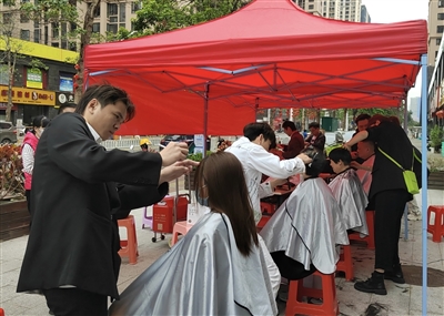 记者看到,在现场设立的义剪区,早有社区居民提前来等待,理发师志愿者热情地迎接每一位居民,仔细询问他们的理发需求,并精心为大家设计修剪各种发型。
