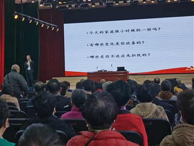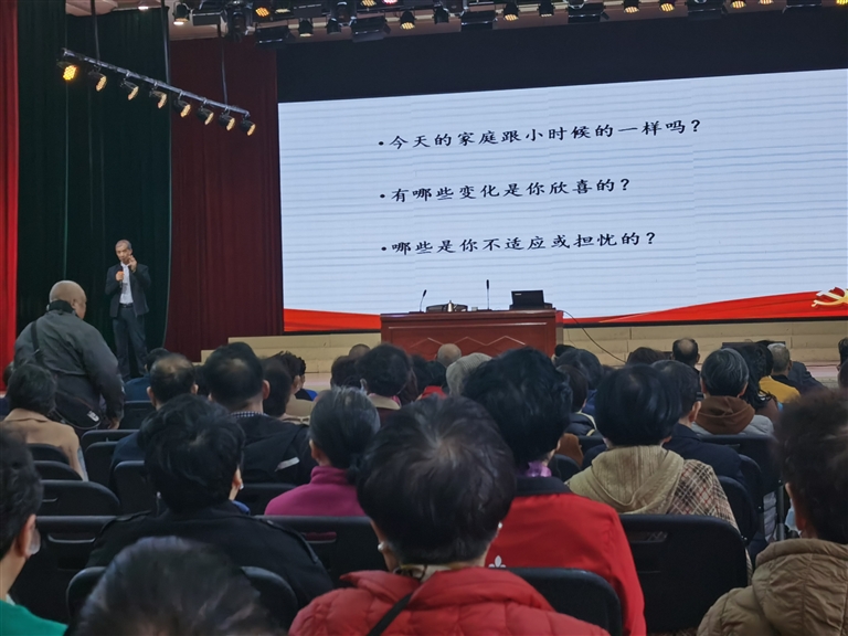 “今天的家庭跟小时候的一样吗?有哪些变化是你欣喜的?又有哪些是你不适应或担心的?”课堂上,讲师林世良通过分析家庭、家教、家风建设的现状、成因以及对家庭社会的影响,进一步加深老年学员对家庭、家教、家风建设的意识,培养社会主流价值观念。