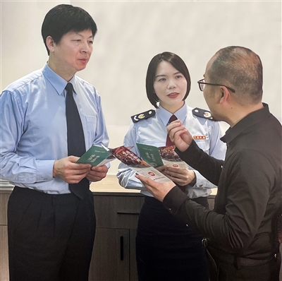 “下一步,我们将继续落实落细税费优惠政策,提高纳税服务质效,深度对接市场主体需求,开展精细政策辅导,让政策红利又快又好直达纳税人。持续优化营商环境,优化创新服务举措,充分激发市场主体的创新活力,加快发展新质生产力。”石狮市税务局相关负责人表示。图为税务工作人员入企业宣传辅导税惠减免政策