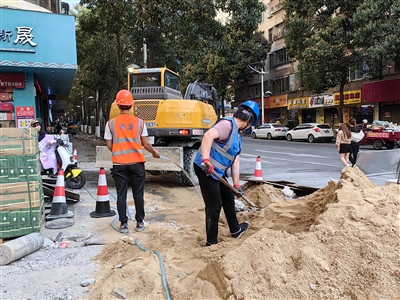 3月26日,记者在狮标附近一处施工现场看到,几台挖掘机械在前方破除旧的人行道路面,工人们则紧随其后清运砖石、铺设过街管道……各项改造措施正有条不紊推进着。据现场施工负责人蔡先生介绍,为确保安全文明施工,且最大限度减小对沿街商铺的影响,此次施工从狮标往民生路方向,采取分区段、单侧封闭的方式逐步推进。