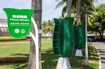 这是3月27日拍摄的博鳌近零碳示范区内的花朵风机。花朵风机用来收集风能,是岛内可再生能源利用项目之一。博鳌亚洲论坛2024年年会前夕,位于海南省琼海市博鳌镇东屿岛的博鳌近零碳示范区启动运行。据介绍,博鳌近零碳示范区在体制机制创新、技术措施集成、政策标准引领等方面都取得了一定的成绩。目前示范区已完成8大类18个项目的建设任务,实现了用电自平衡,进入近零碳运行阶段。(新华)